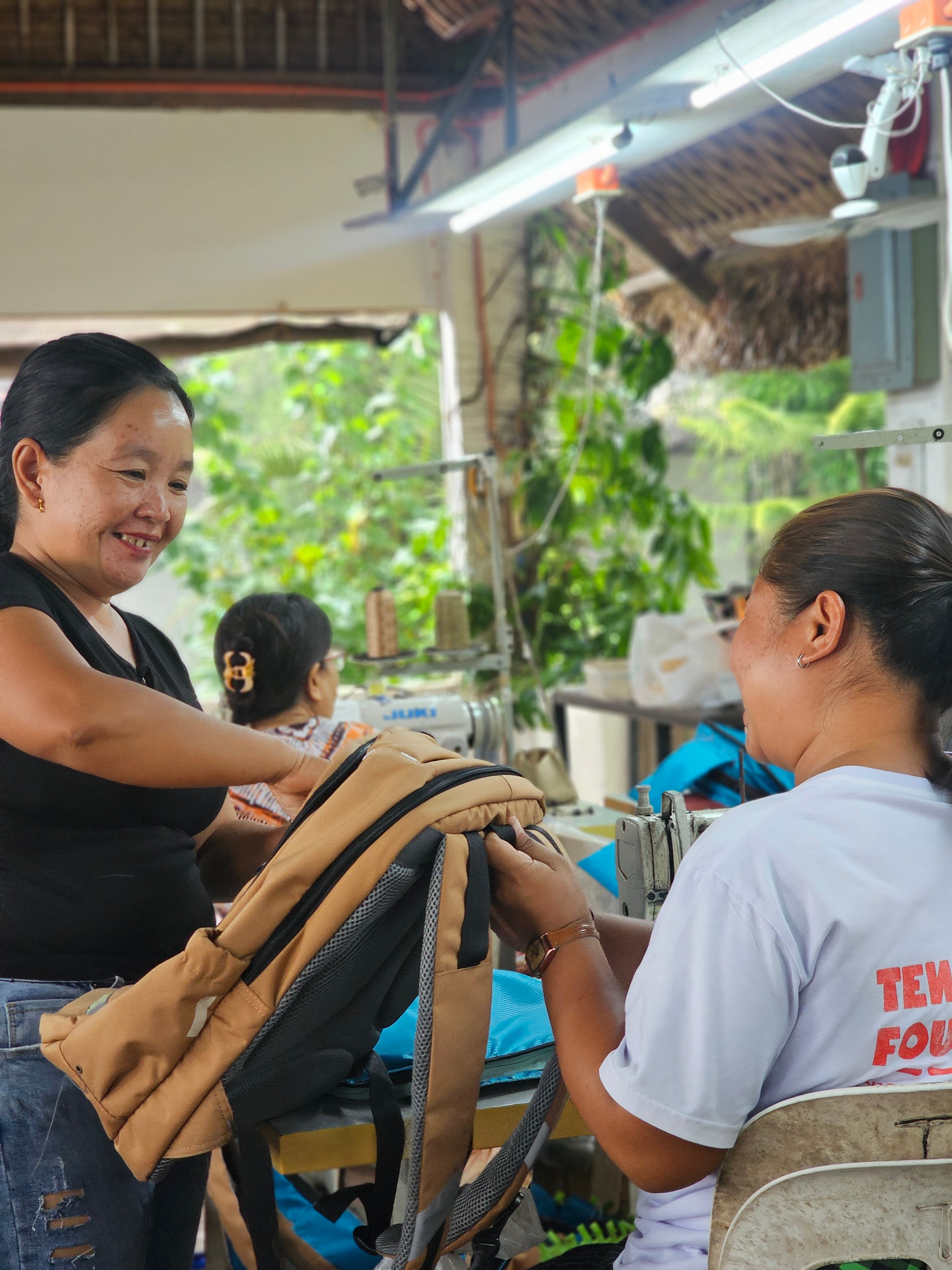 This school bag is made by the makers you have just met. Every purchase supports fair work and education in the Philippines.